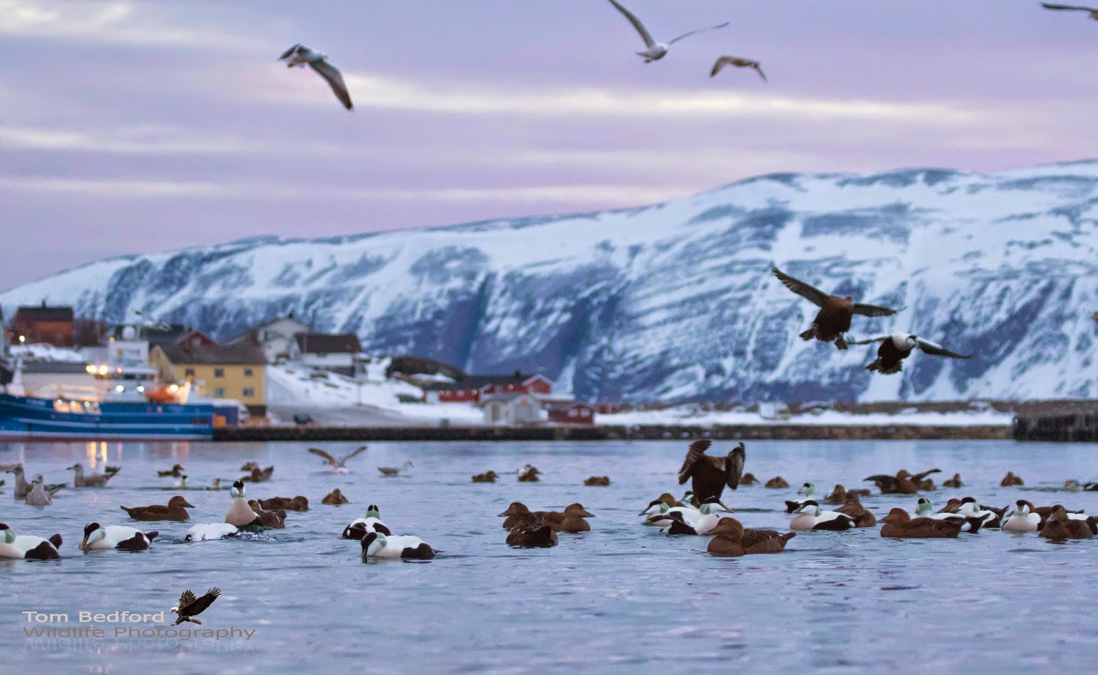 Picking out a white bird in that white habitat was not going to be easy. Secondly, shortly after arriving on top of Båtsfjordfjellet, the weather closed in, an unpleasant combination of high winds, thick fog and blizzards. I didn't get out of the car, but turned around and descended back towards Båtsfjord. At lower levels, the weather was calmer, but I kept nervously looking behind me at the weather. Getting caught alone on the hills by that weather had all the hallmarks of a good mountain rescue story.